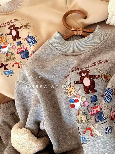 可愛いくまさんイラストのスウェット上下セットは